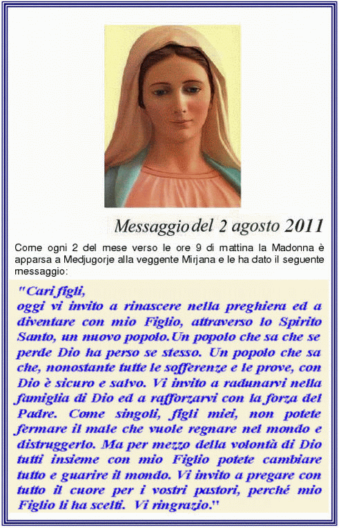 SITO PUBBLICATO A CURA DELLA ASSOCIAZIONE MEDJUGORJE LIGURIA