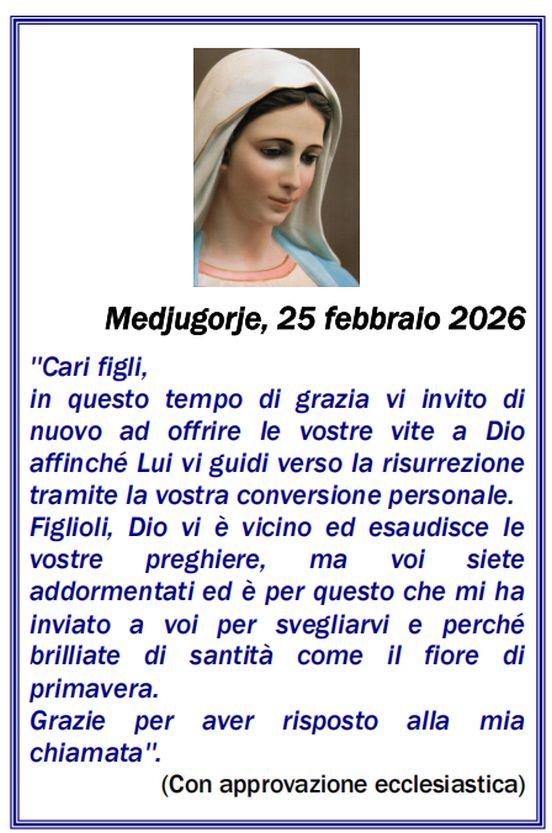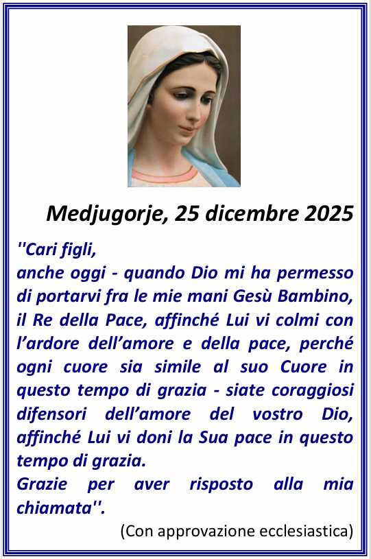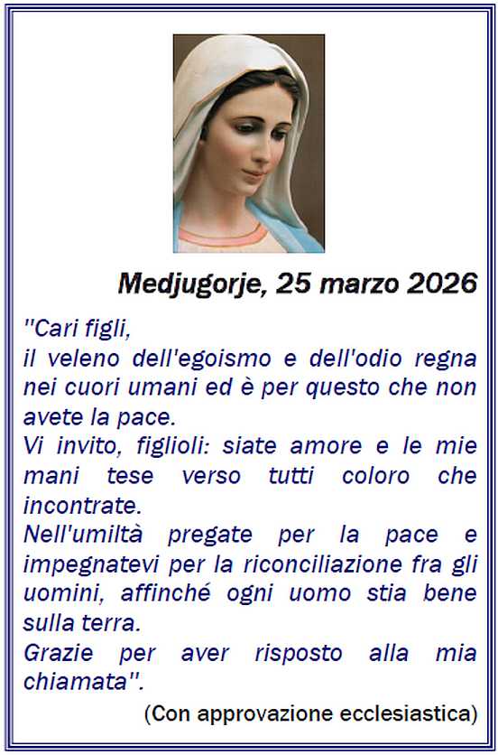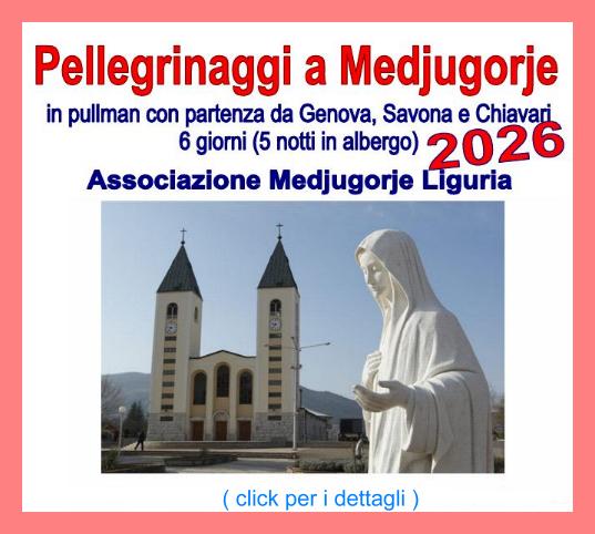 SITO PUBBLICATO A CURA DELLA ASSOCIAZIONE MEDJUGORJE LIGURIA